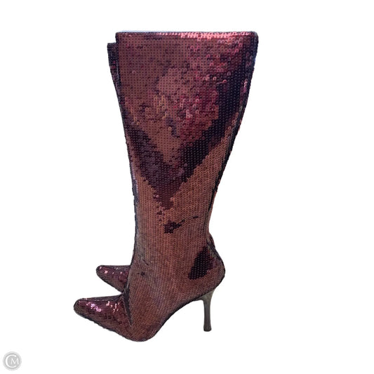 Boots Mid-calf Heels By Anne Michelle In Maroon, Size: 10
