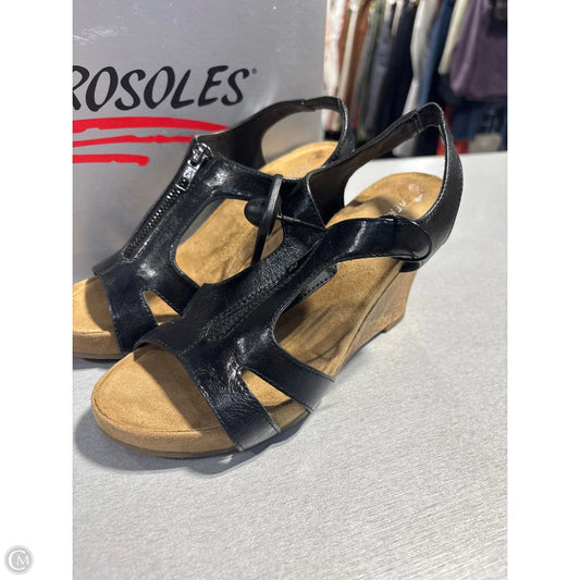 Sandals Heels Wedge By Aerosoles In Black & Brown, Size: 7.5