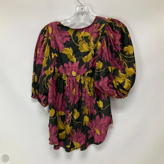 Top Short Sleeve By Anthropologie In Green & Pink, Size: L