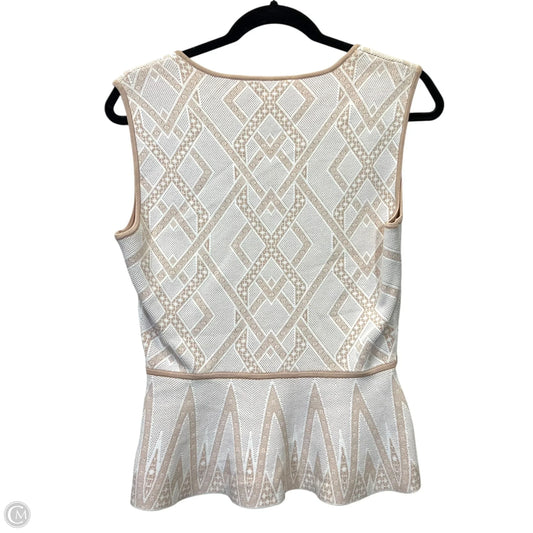 Top Sleeveless Designer By Bcbgmaxazria In Tan & White, Size: M