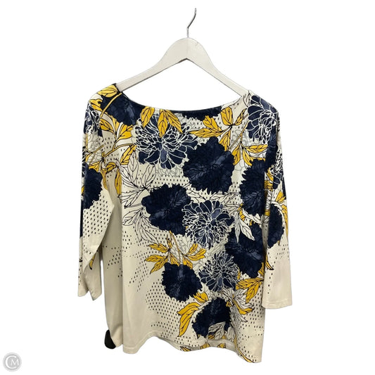 Top 3/4 Sleeve By Charter Club In Blue & Yellow, Size: Xl