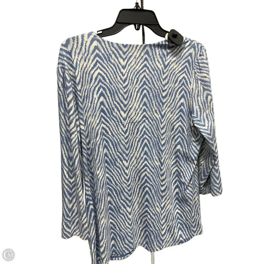 Top 3/4 Sleeve By Chicos In Blue & White, Size: L