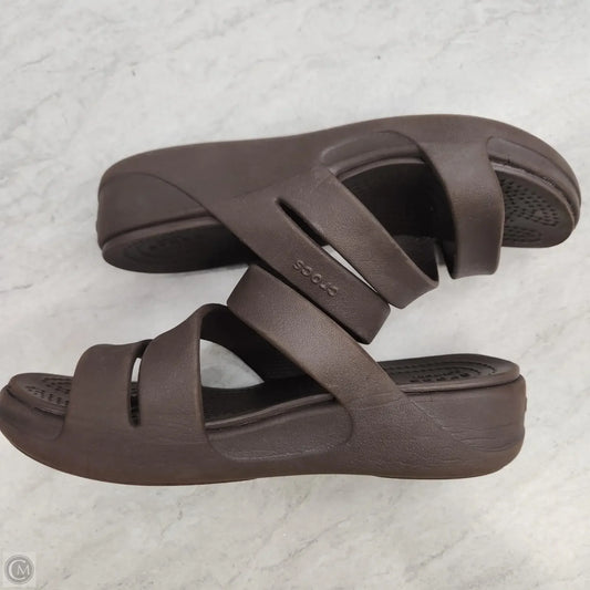 Sandals Flats By Crocs In Brown, Size: 5
