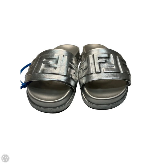 Sandals Luxury Designer By Fendi In Silver, Size: 6