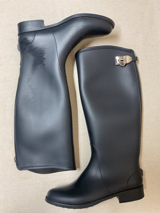 Boots Designer By Ferragamo In Navy, Size:9