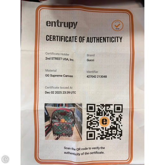 Backpack Luxury Designer By Gucci, Size: Small