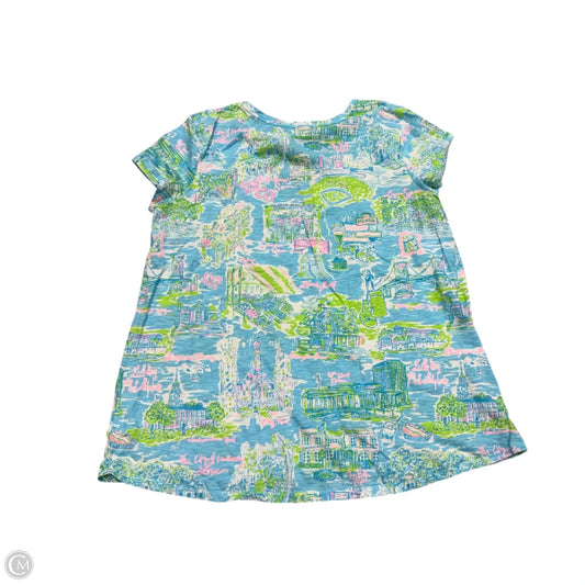 Top Short Sleeve Designer By Lilly Pulitzer In Blue & Green, Size: L