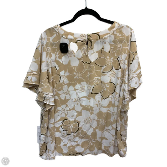 Top Short Sleeve By Liz Claiborne In Tan & White, Size: Xxl