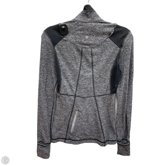 Athletic Top Long Sleeve Collar By Lululemon In Black & Grey, Size: S