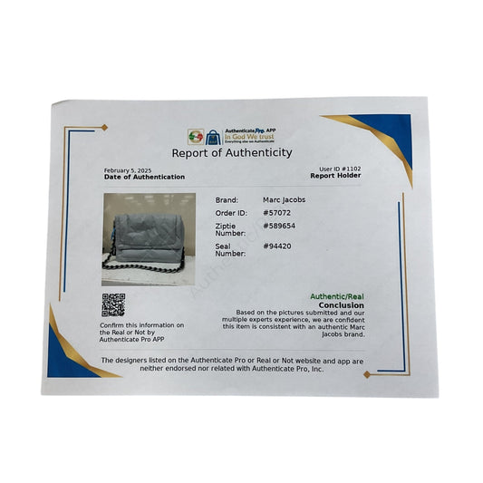 Handbag Luxury Designer By Marc Jacobs In Silver, Size:Small