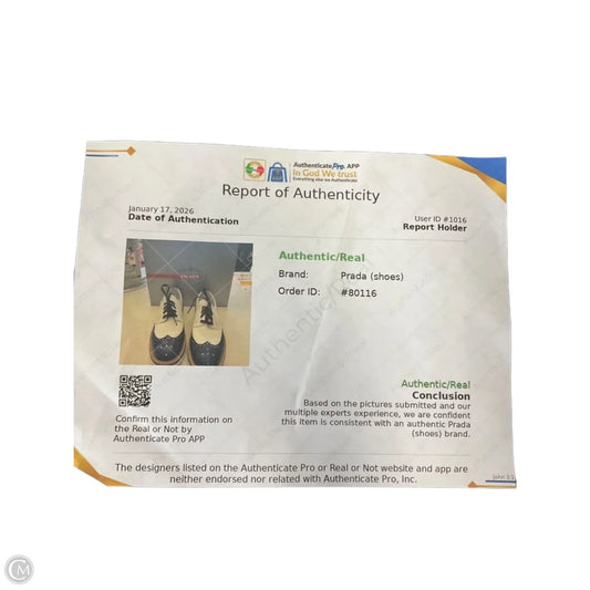 Shoes Luxury Designer By Prada In Black & White, Size: 7