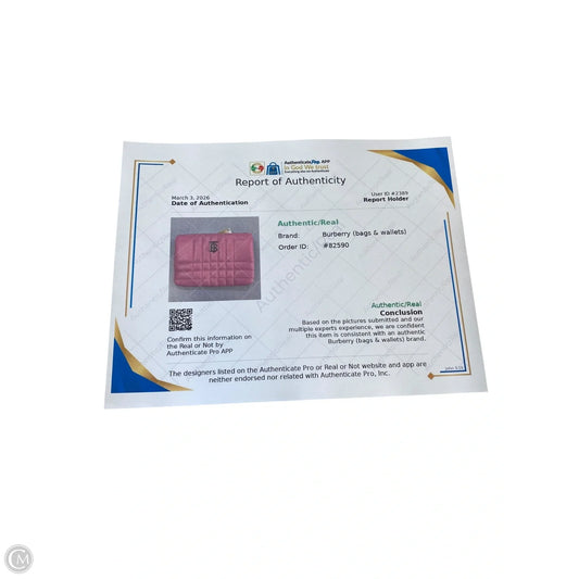 Wallet Luxury Designer By Burberry, Size: Medium