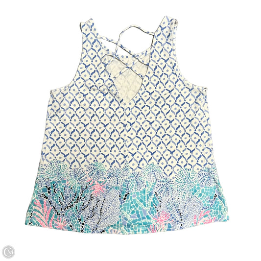 Top Short Sleeve Designer By Lilly Pulitzer In Blue & White, Size: S