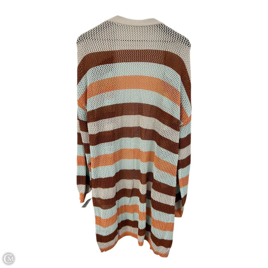 Sweater Cardigan By Nine West Apparel In Orange & White, Size: L