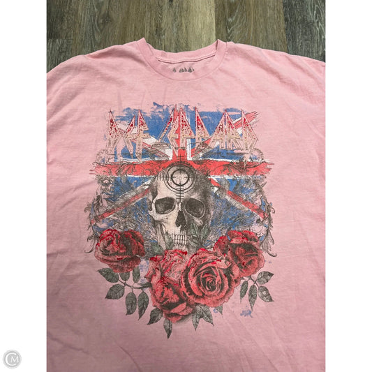Top Short Sleeve By Def Leppard In Pink, Size: 1x