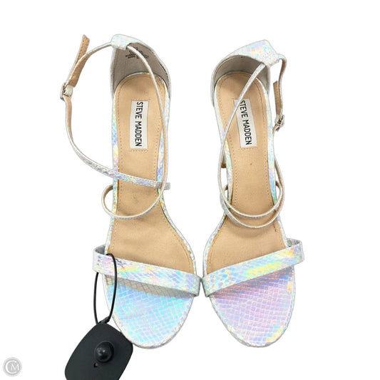 Sandals Heels Stiletto By Steve Madden In Silver, Size: 10