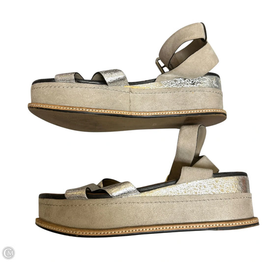 Sandals Heels Wedge By Clothes Mentor In Silver, Size: 11.5