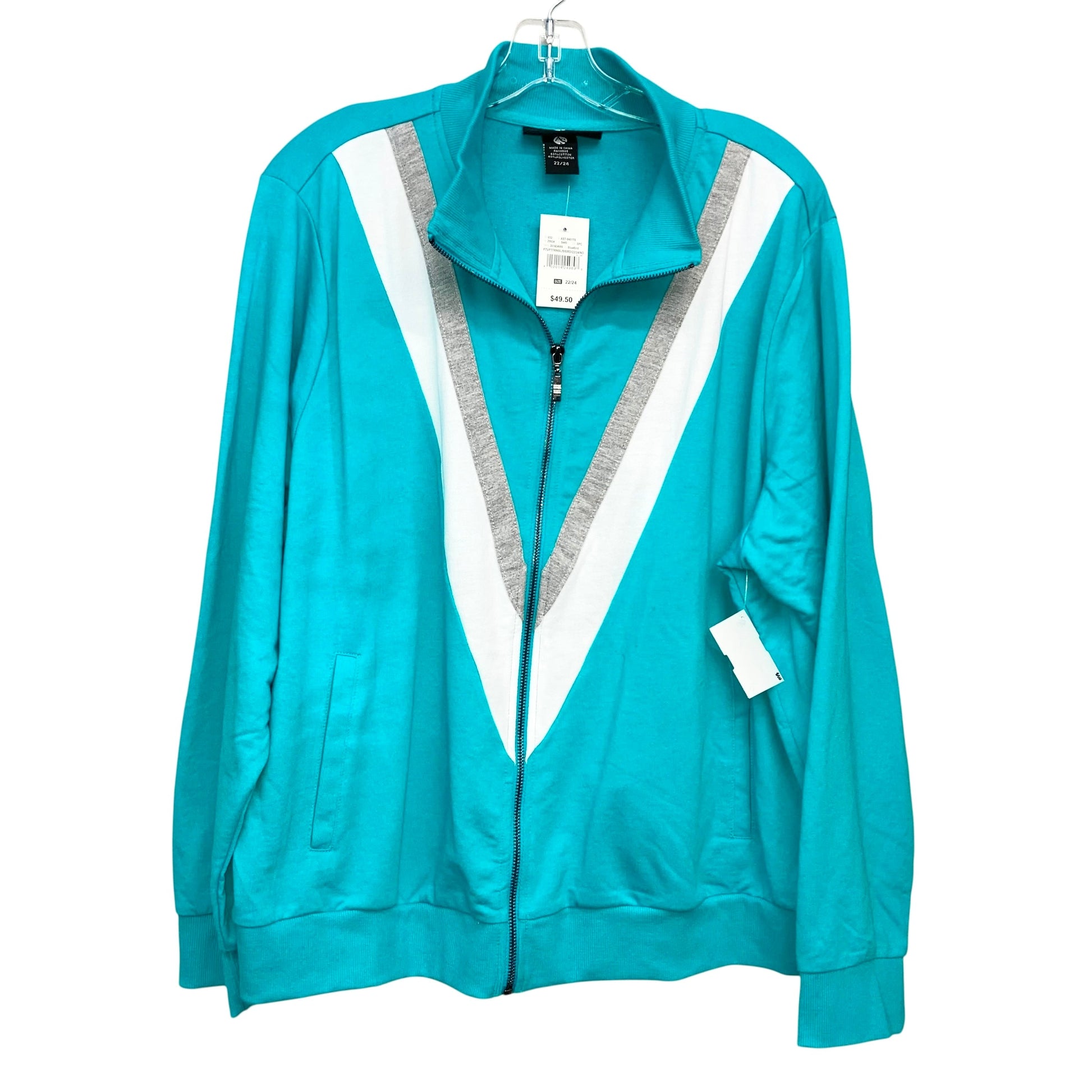 Athletic Jacket By Ashley Stewart In Aqua, Size:2X