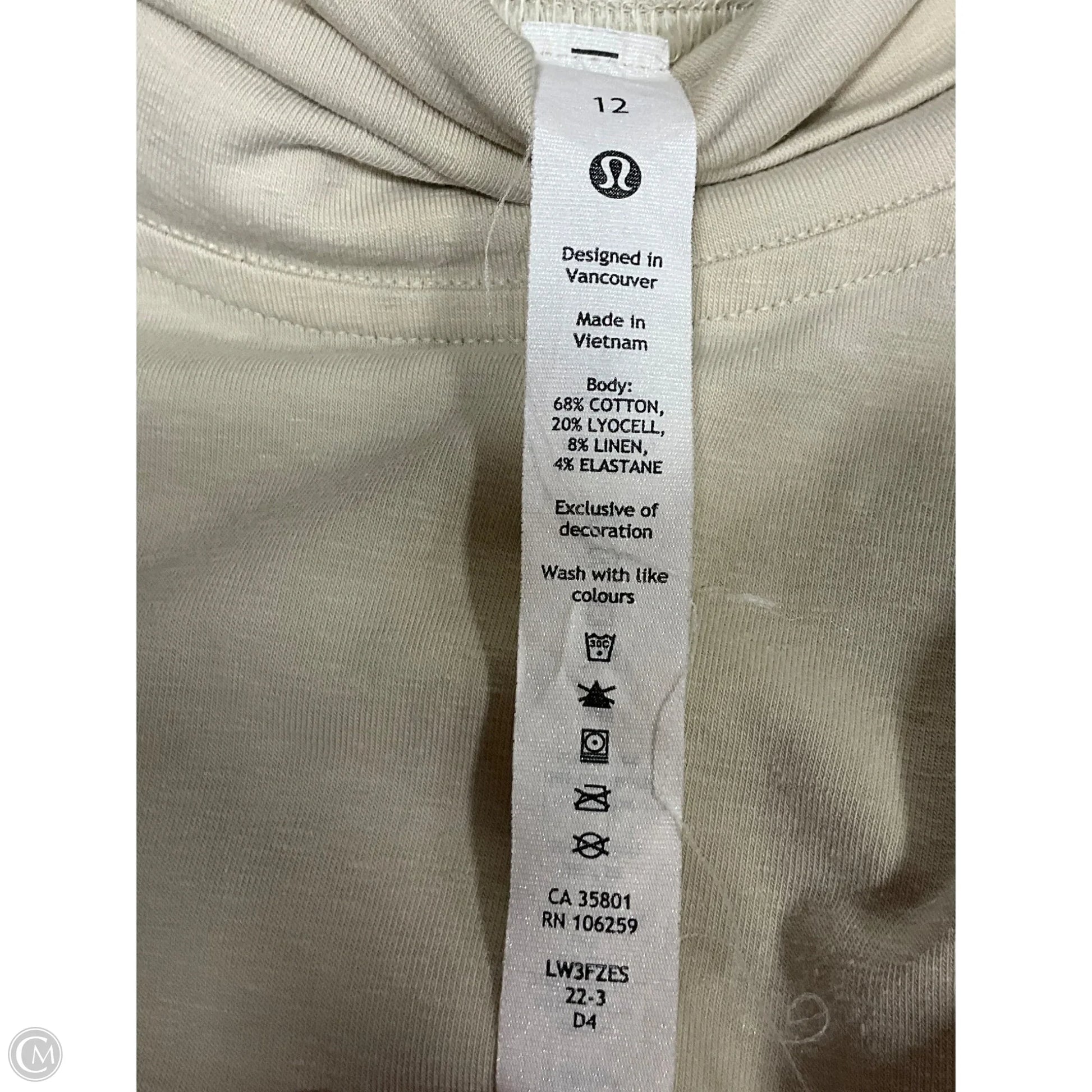 Athletic Top Short Sleeve By Lululemon In Beige, Size: 12