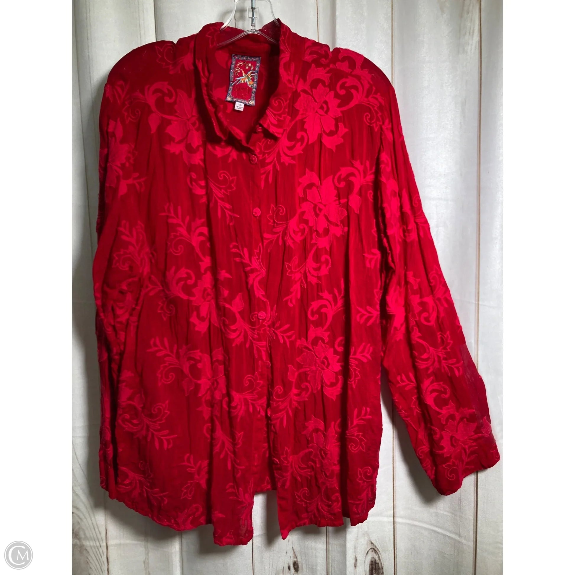 Blouse Long Sleeve By Johnny Was In Red, Size: Xxl