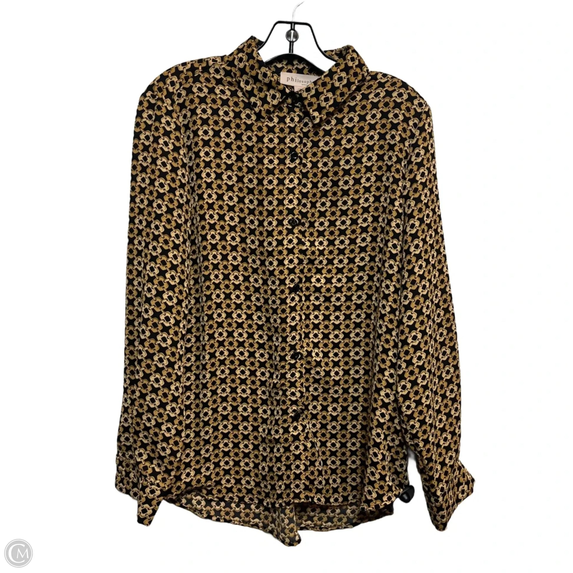 Blouse Long Sleeve By Philosophy In Black & Tan, Size: L