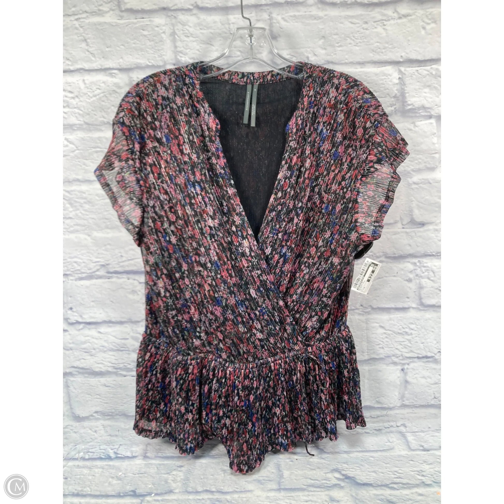 Blouse Short Sleeve By Anthropologie In Black & Pink, Size: M