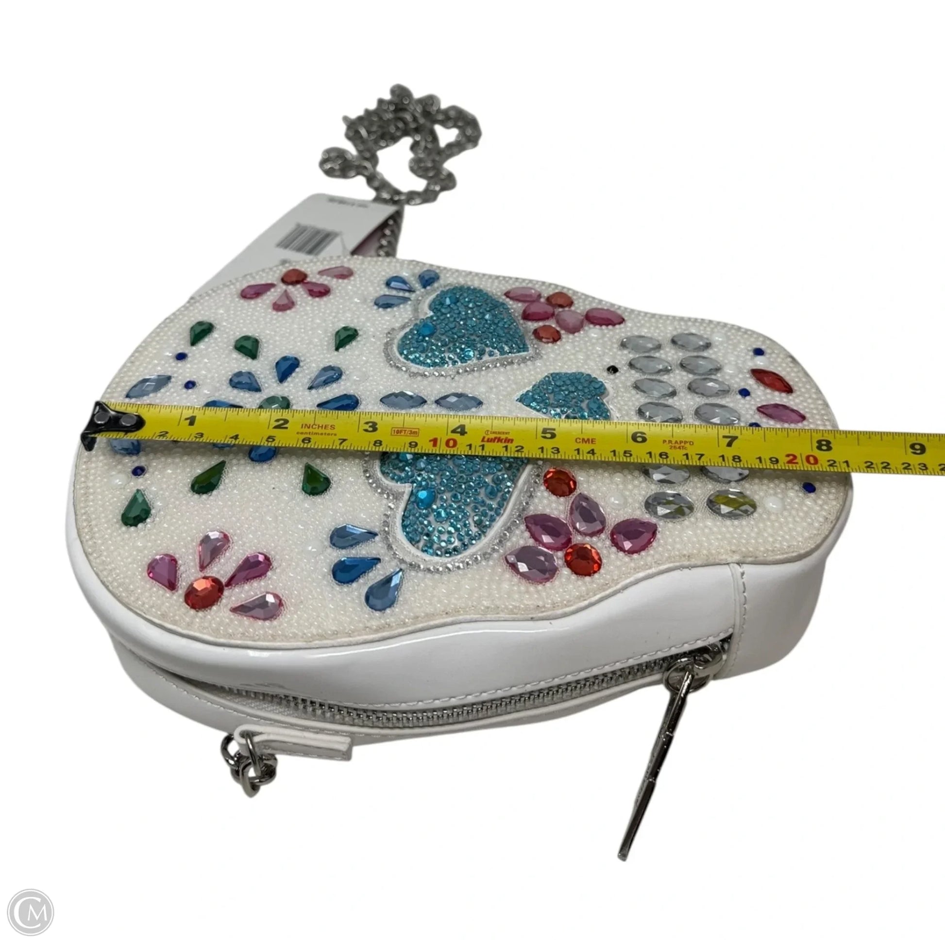 Bone-Jour Candy Skull Crossbody Handbag By Betsey Johnson, Size: Small