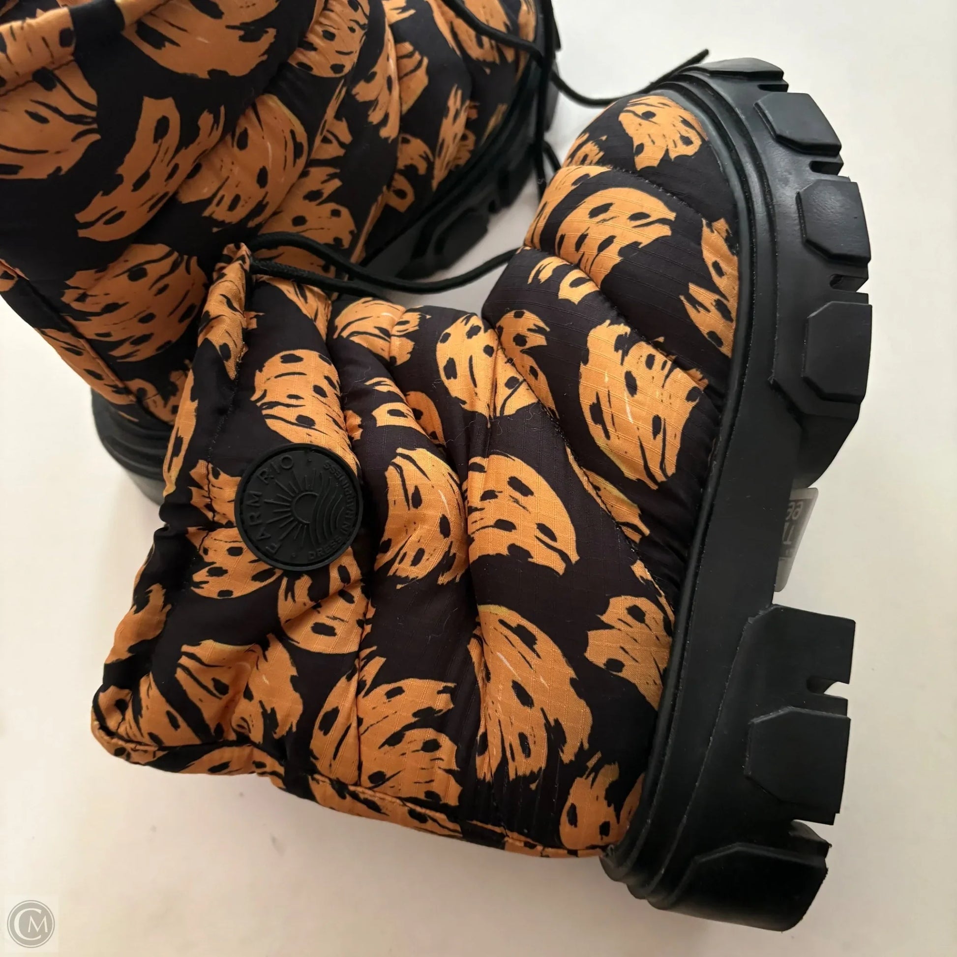 Boots Ankle Flats By Farm Rio In Black & Yellow, Size: 7