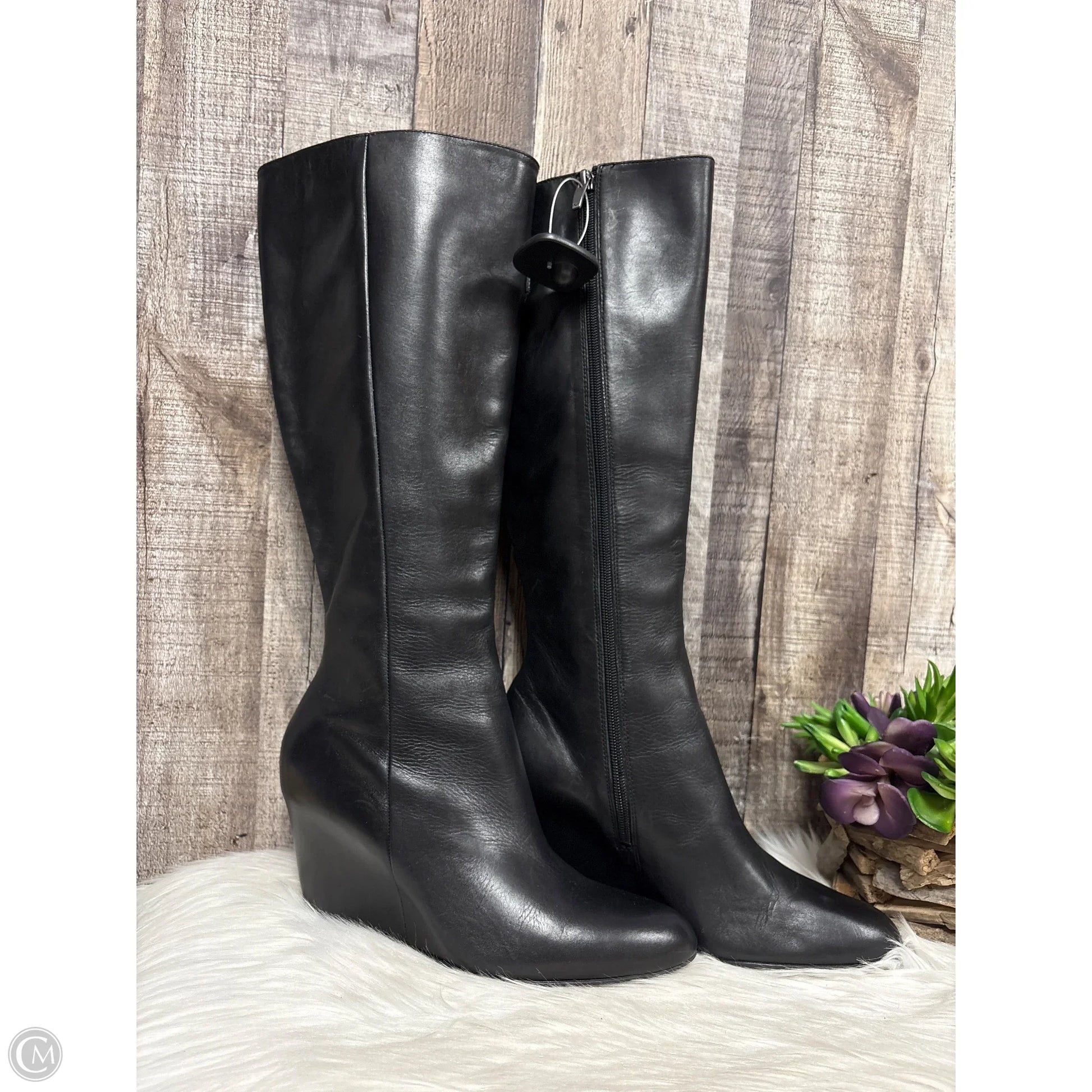 Step out in style with Via Spiga's Black Knee-Heeled Boots, Size 10. A fashion must-have.