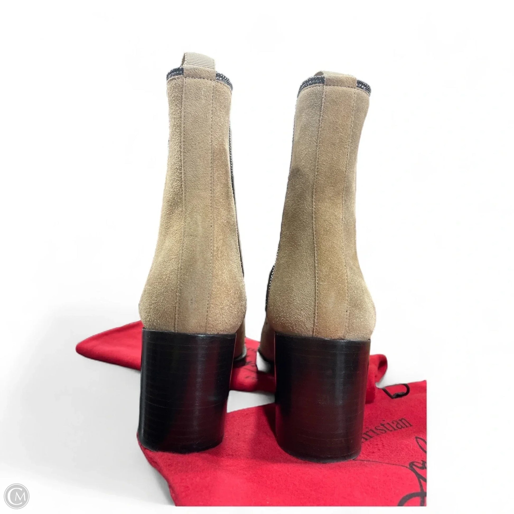 Boots Luxury Designer By Christian Louboutin In Tan, Size: 10