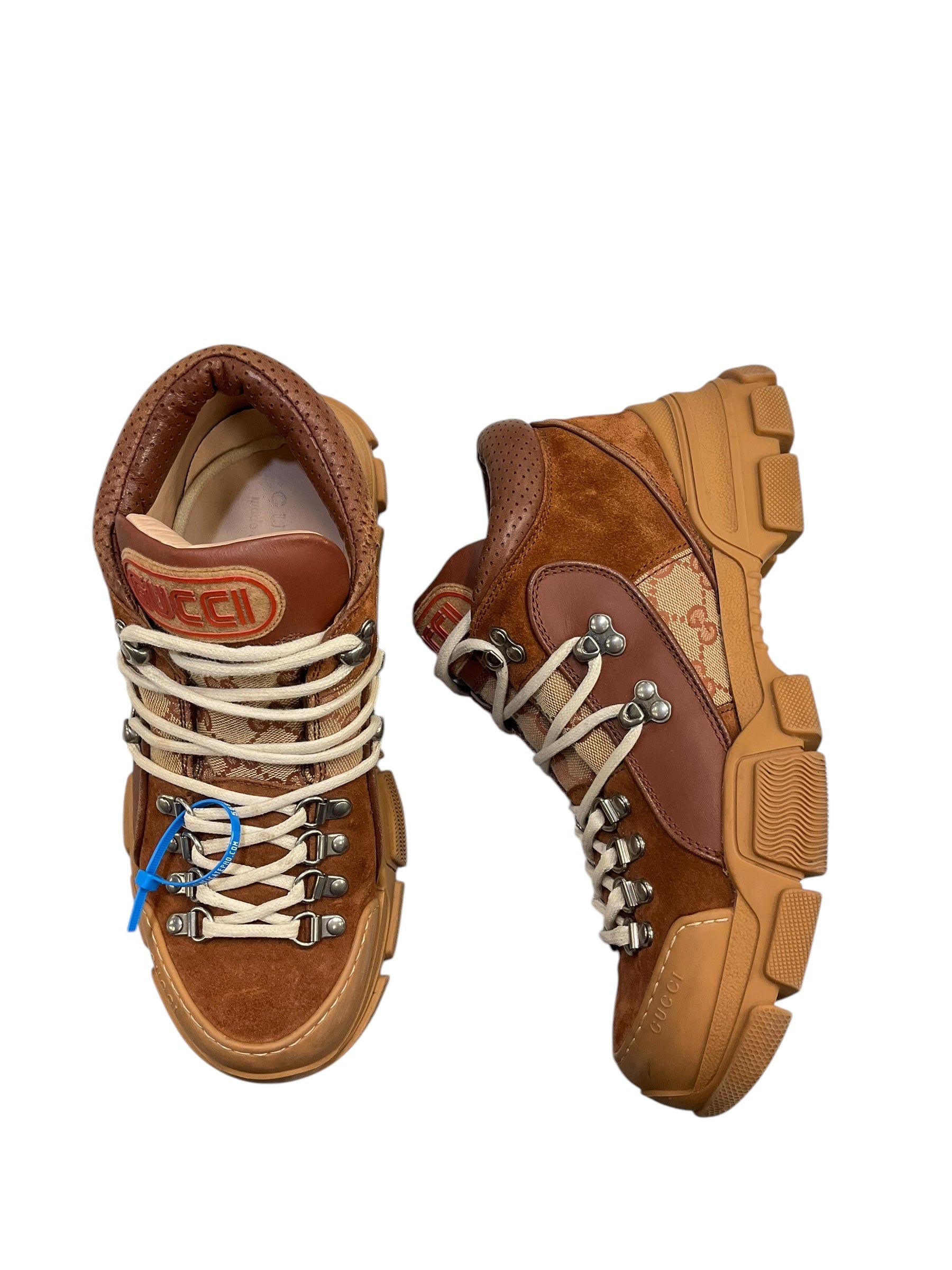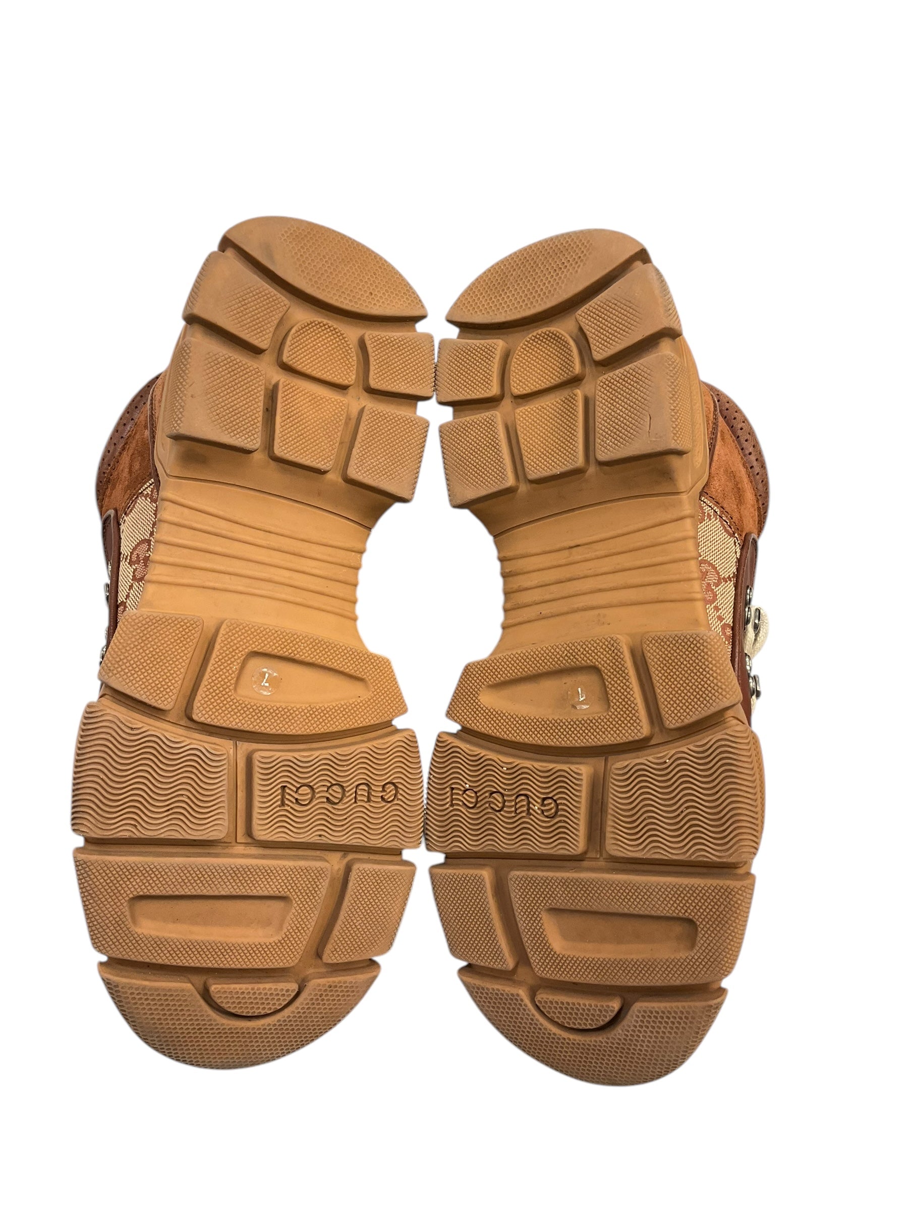 Boots Luxury Designer By Gucci In Bronze, Size: 8.5 Women | 7 Men