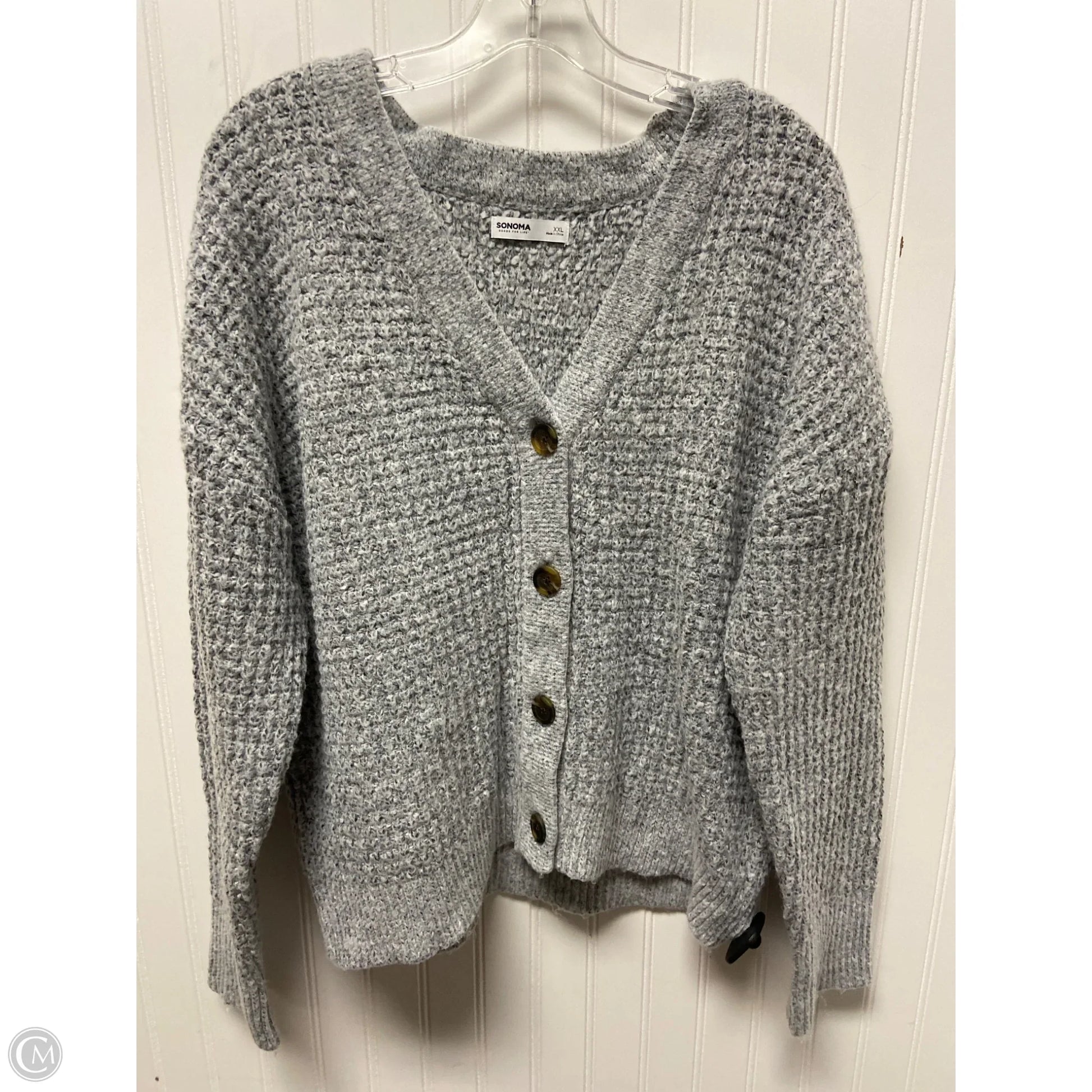 Sonoma's cozy grey cardigan in size 1x for chic comfort.