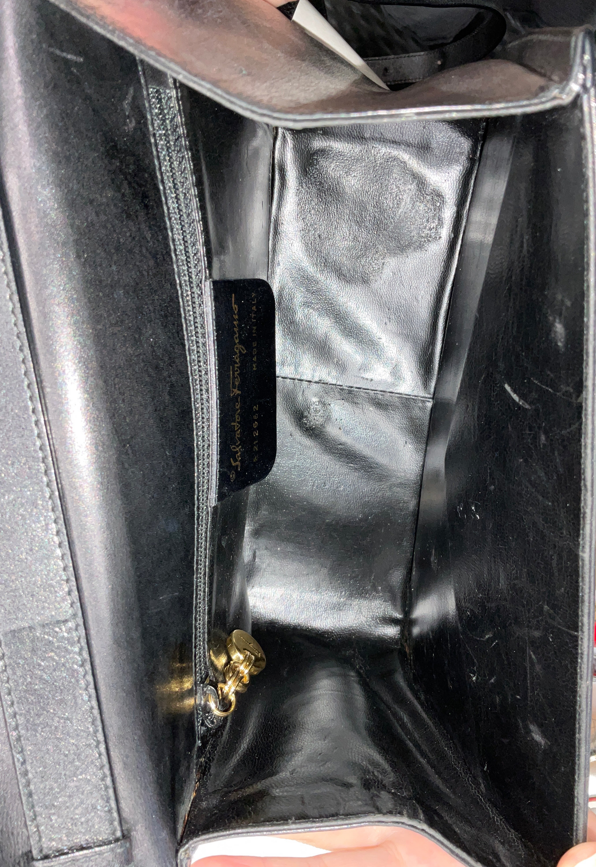 Gancini Black Leather Shoulder Bag By Ferragamo, Size: Medium