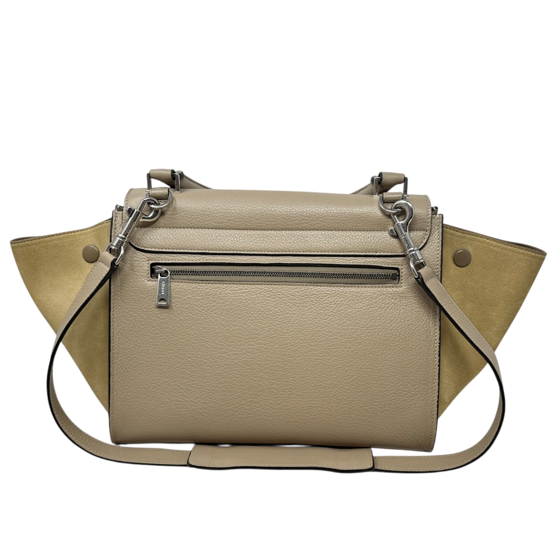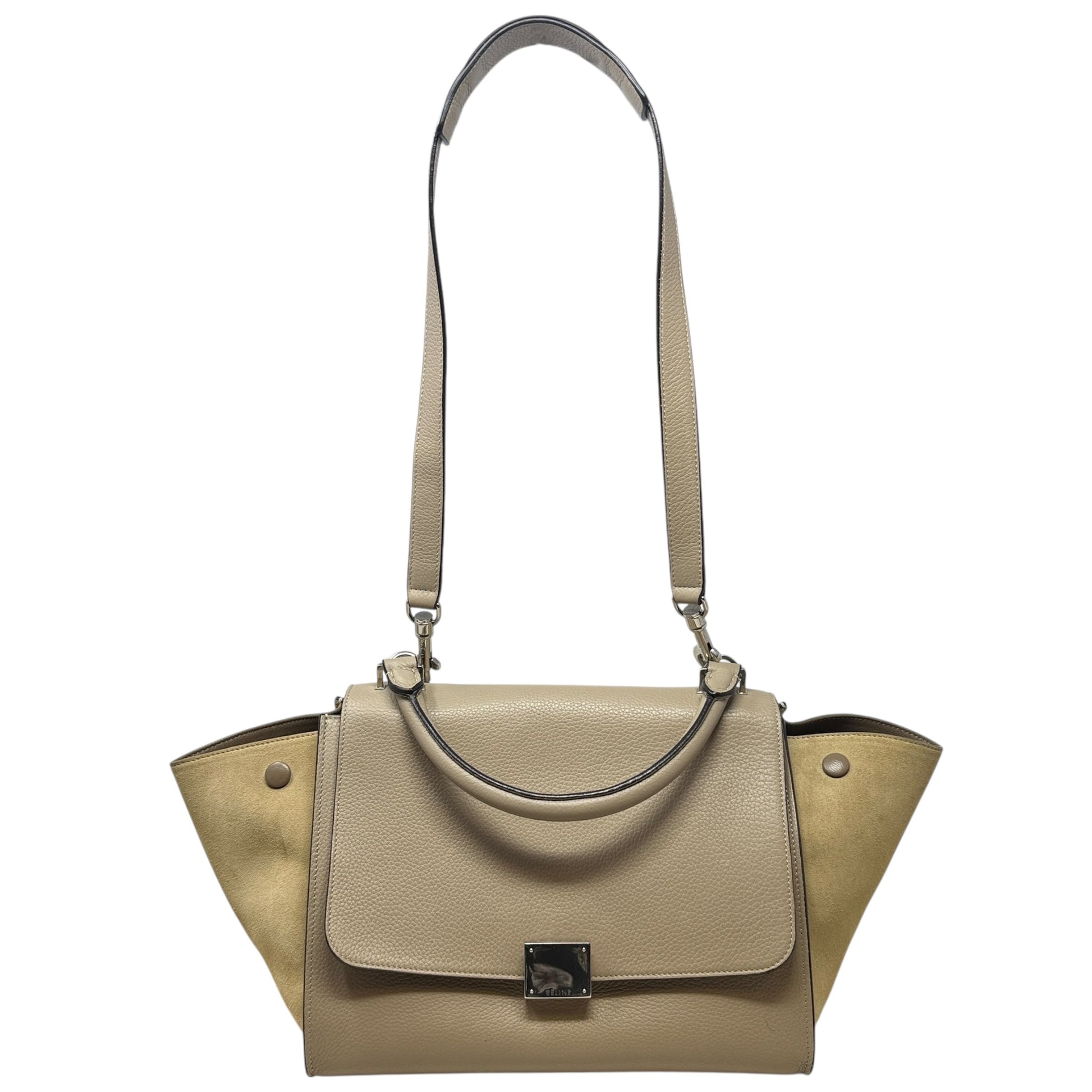 Drummed Calfskin Suede Medium Trapeze Souris Tote Luxury Designer By Celine, Size: Medium