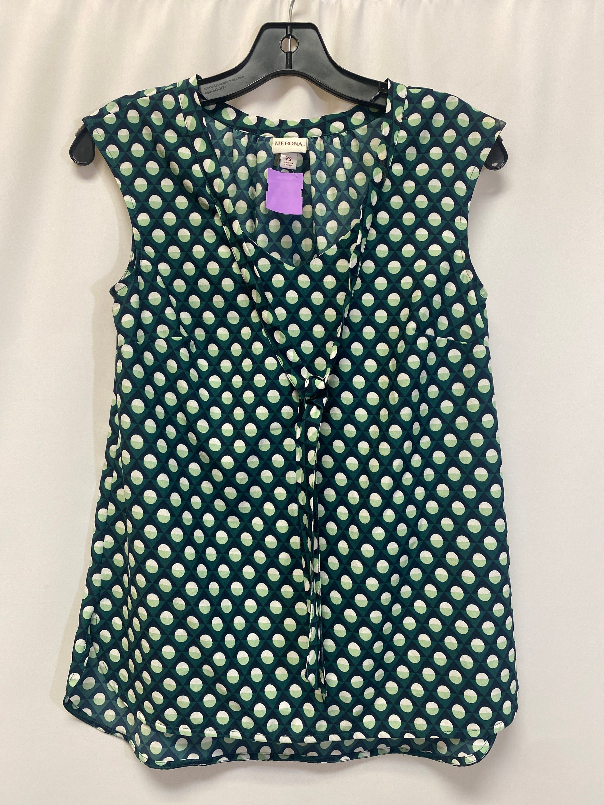Green Top Sleeveless Merona, Size Xs