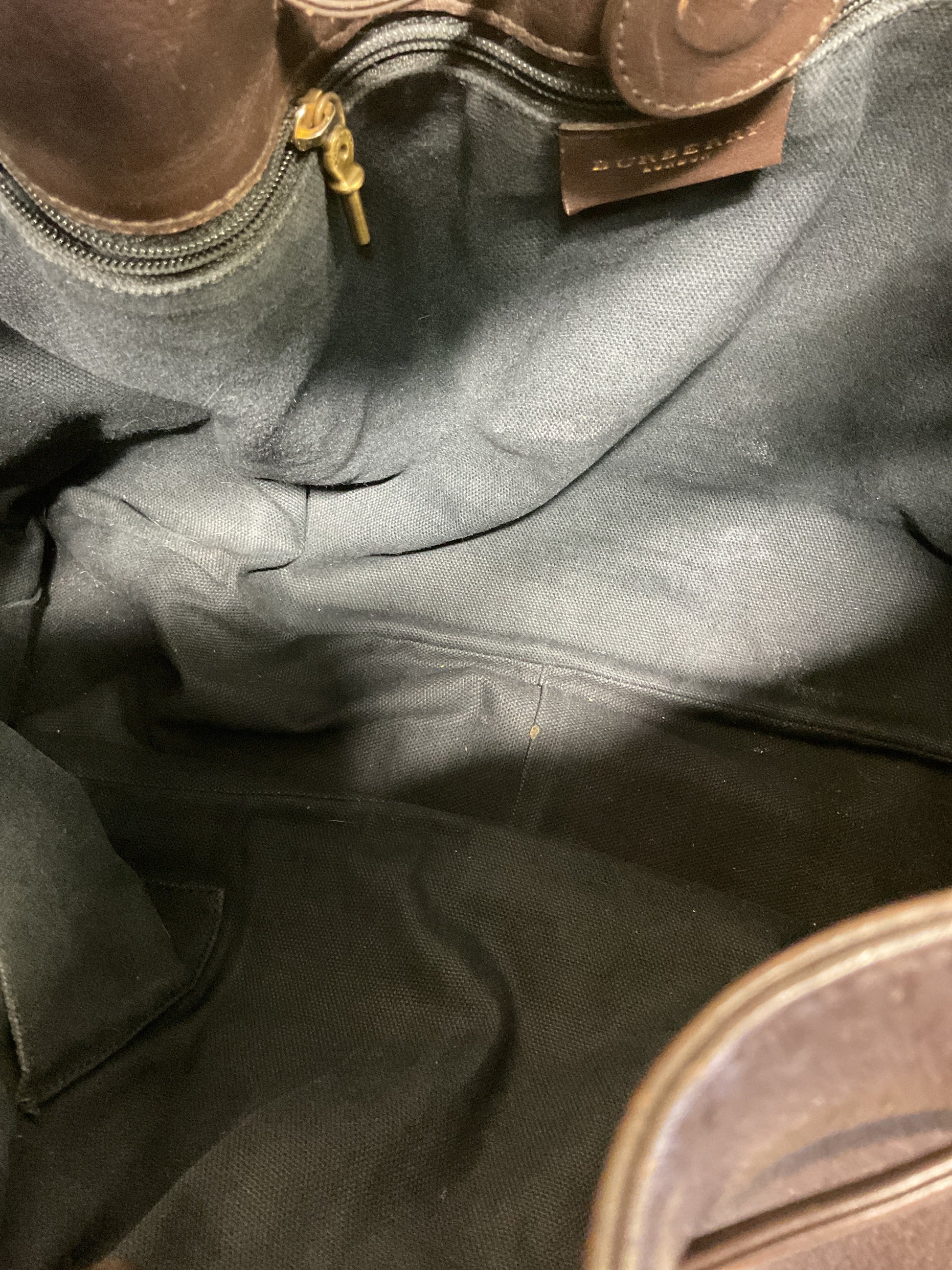 Indulge in Burberry luxury with this spacious, chic brown handbag by a renowned designer.