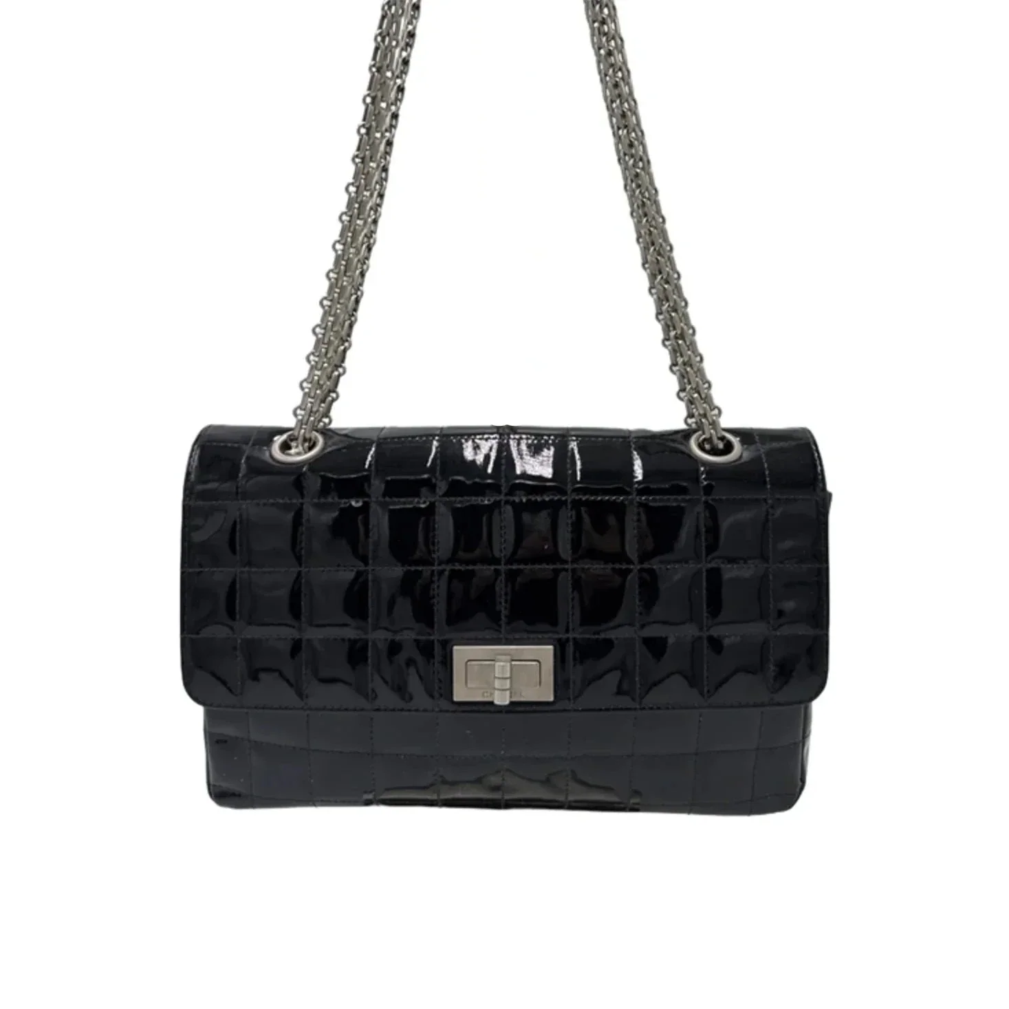 Other Info: CHOCOLATE BAR REISSUE FLAP BAG IN BLACK PATENT LEATHER. CERTIFIED AUTHENTIC BY ENTRUPY. SEE ALL PICTURES, ALL SALES ARE FINAL.