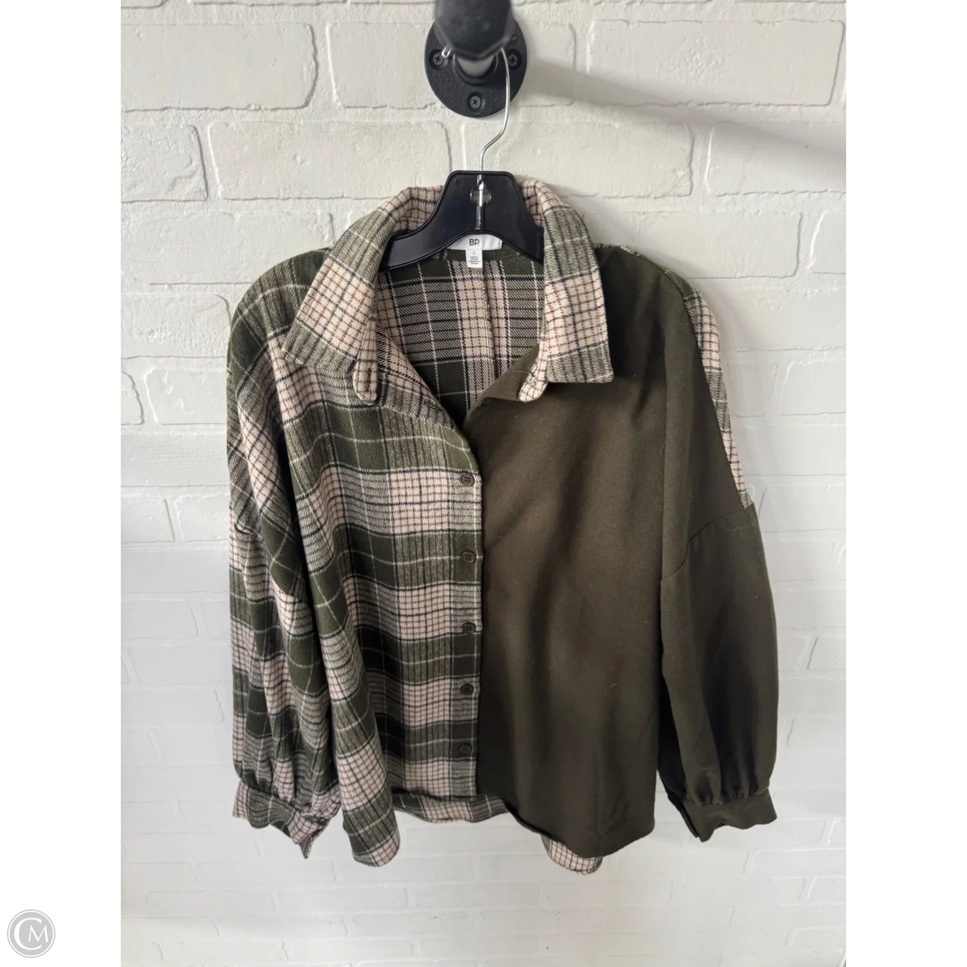 Jacket Shirt By Bp In Cream & Green, Size: S