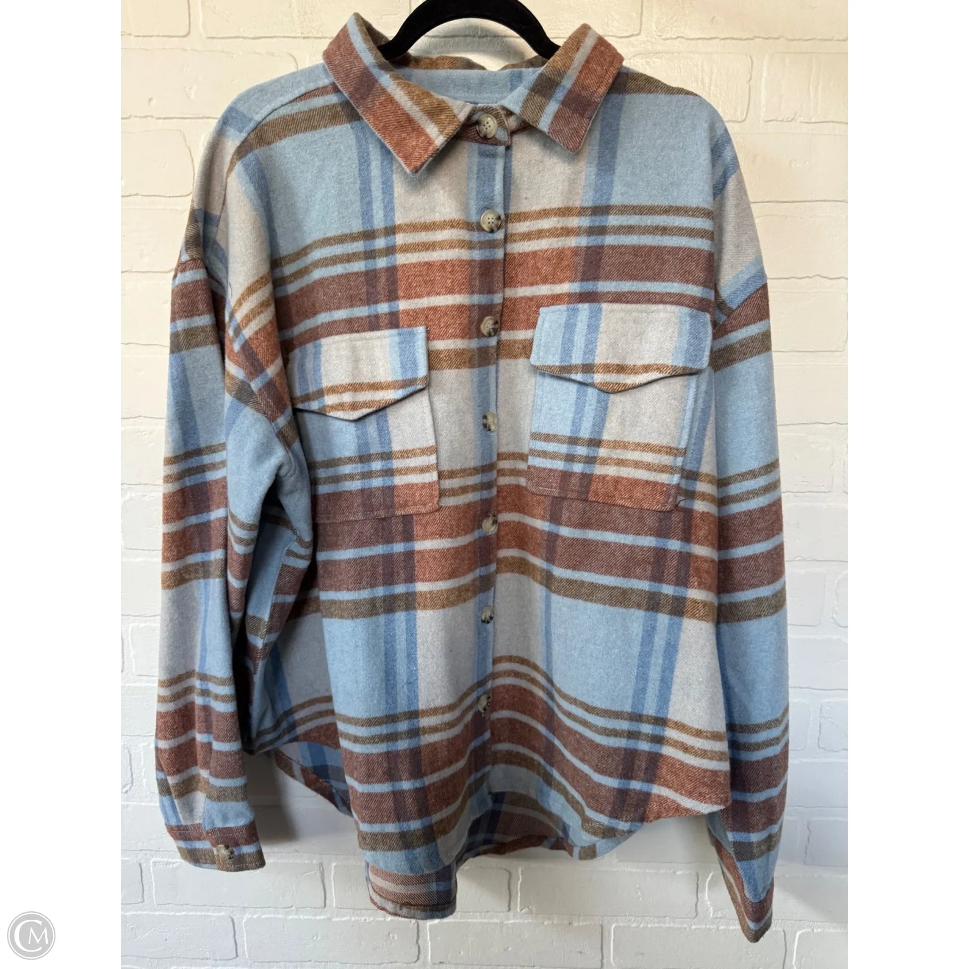 Jacket Shirt By Clothes Mentor In Blue & Tan, Size: 2x