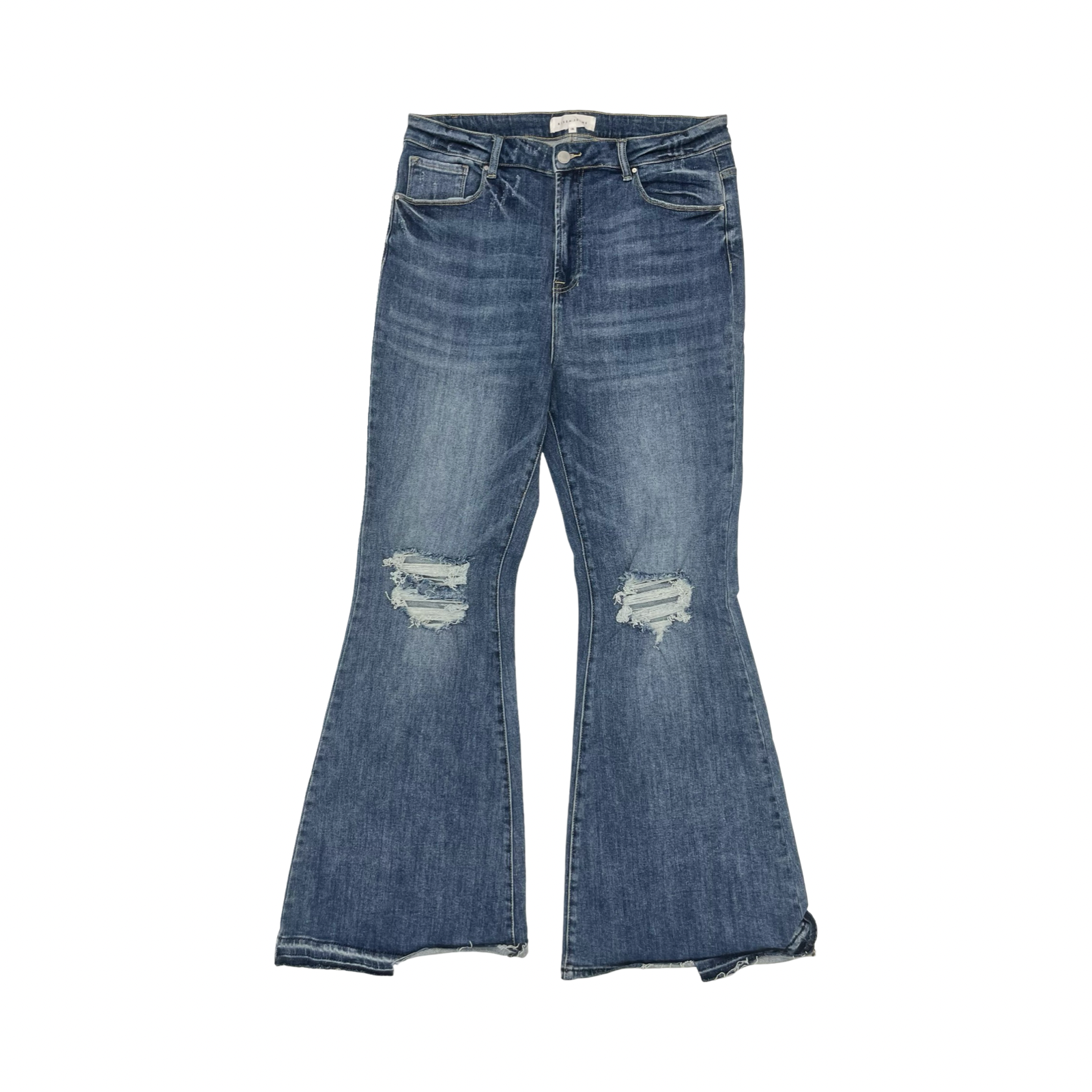 Risen Blue Denim Flared Jeans in Size 1X: Embrace bold style with flattering fit and comfort.