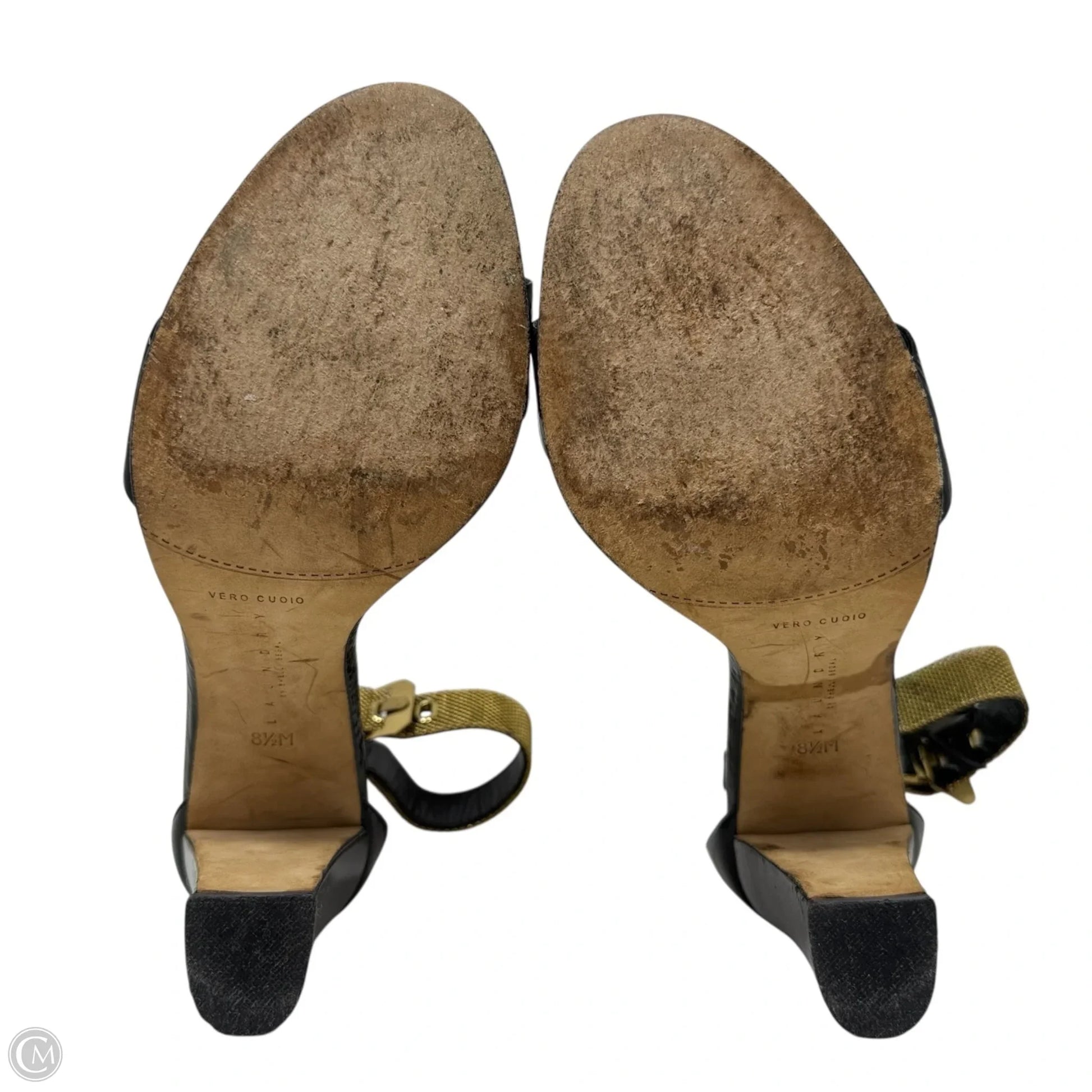 Reggie Chain Strap Block Heel Sandals By Laundry In Black & Gold, Size: 8.5