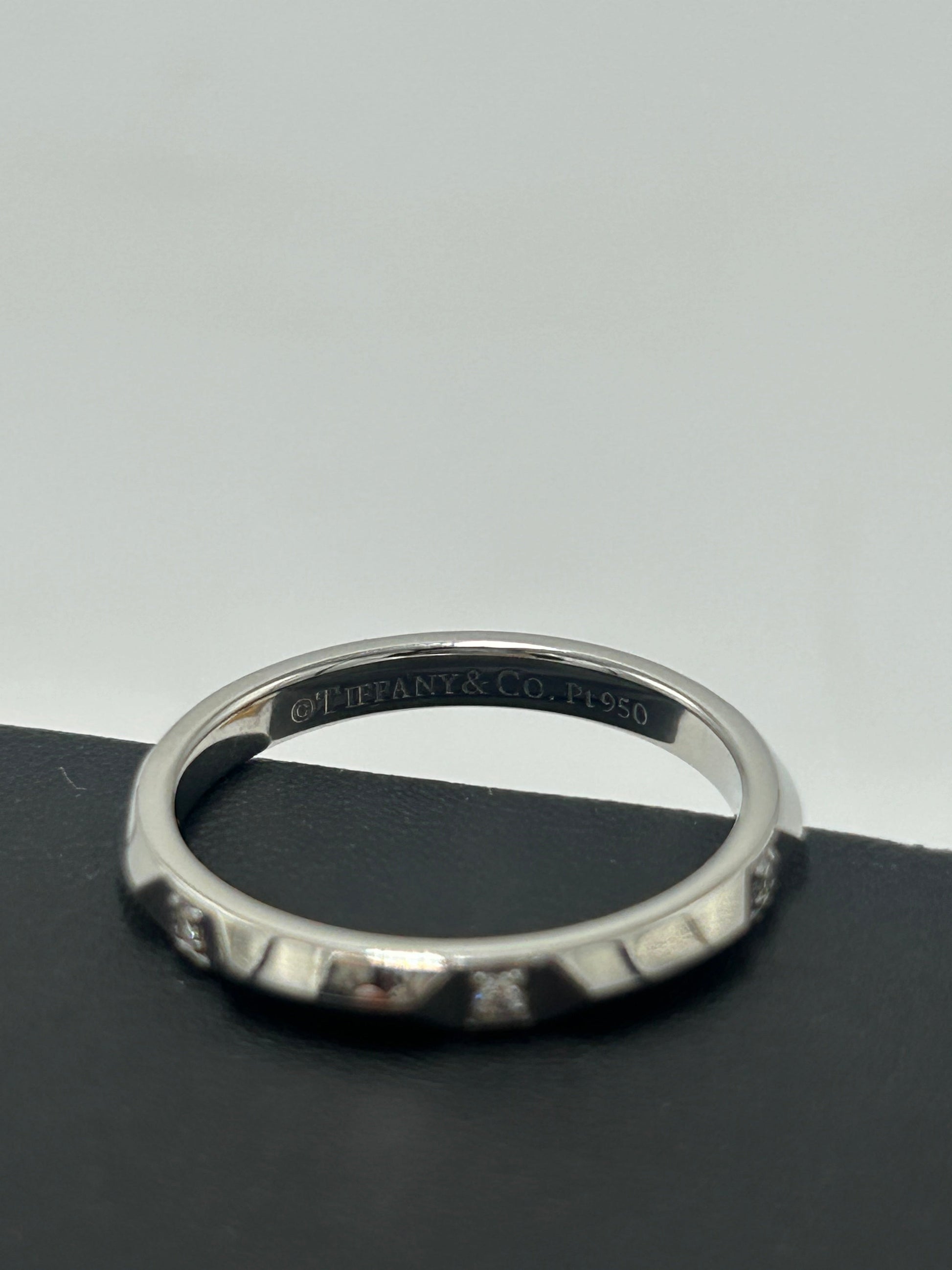 Other Info: TIFFANY TRUE BAND RING PLATINUM W/ DIAMONDS, RETAILS FOR $1750. Certified Authentic by 3rd Party, comes with the original duster.