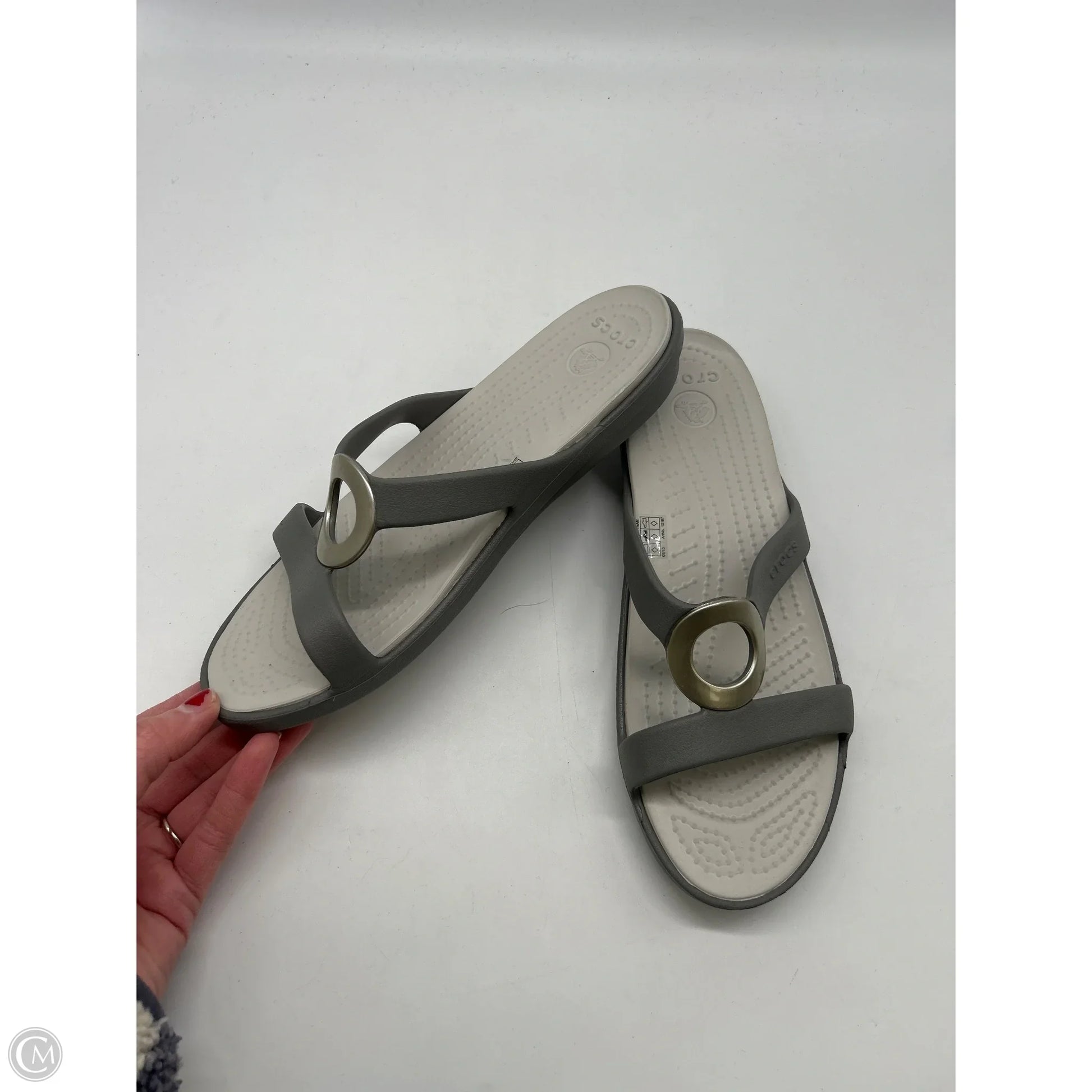 Sandals Flats By Crocs In Grey, Size: 8