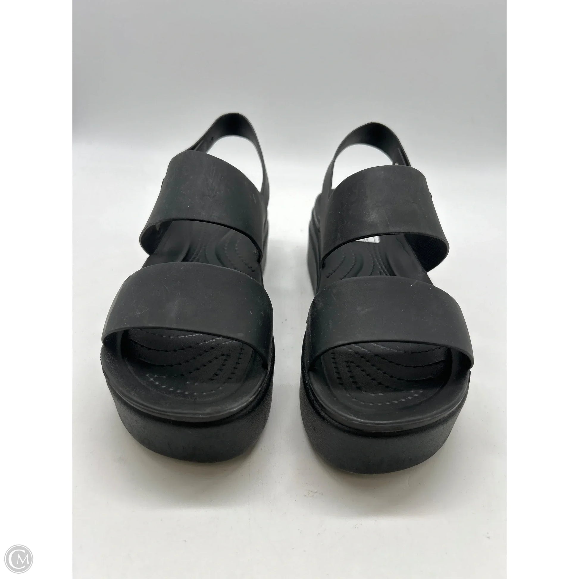 Sandals Heels Platform By Crocs In Black, Size: 8