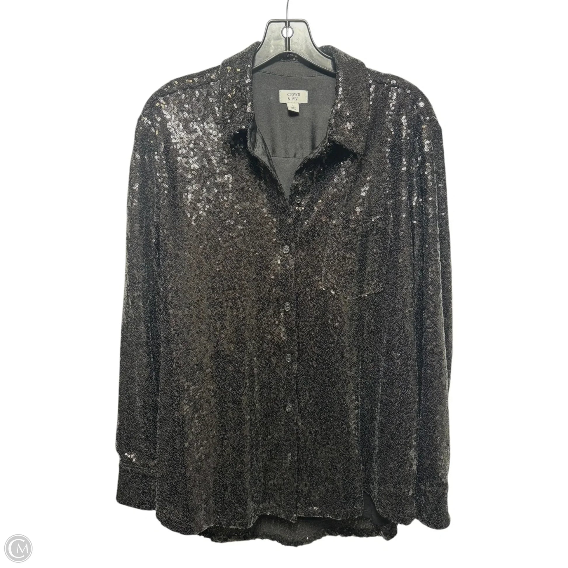 Sequin Top Long Sleeve By Crown And Ivy In Black, Size: L
