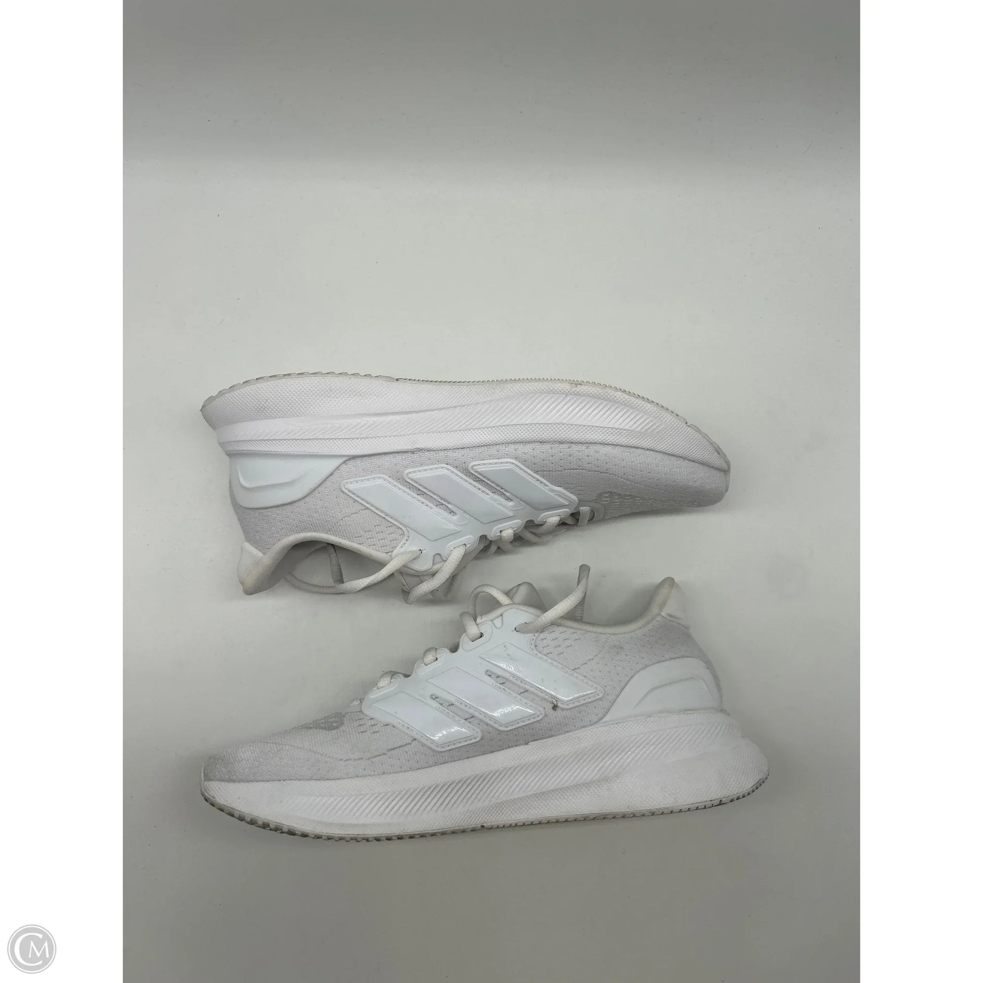 Step up your game with these sleek Adidas athletic shoes in classic white, size 9. Boost your confidence and comfort with every step. Experience style and performance in one package.