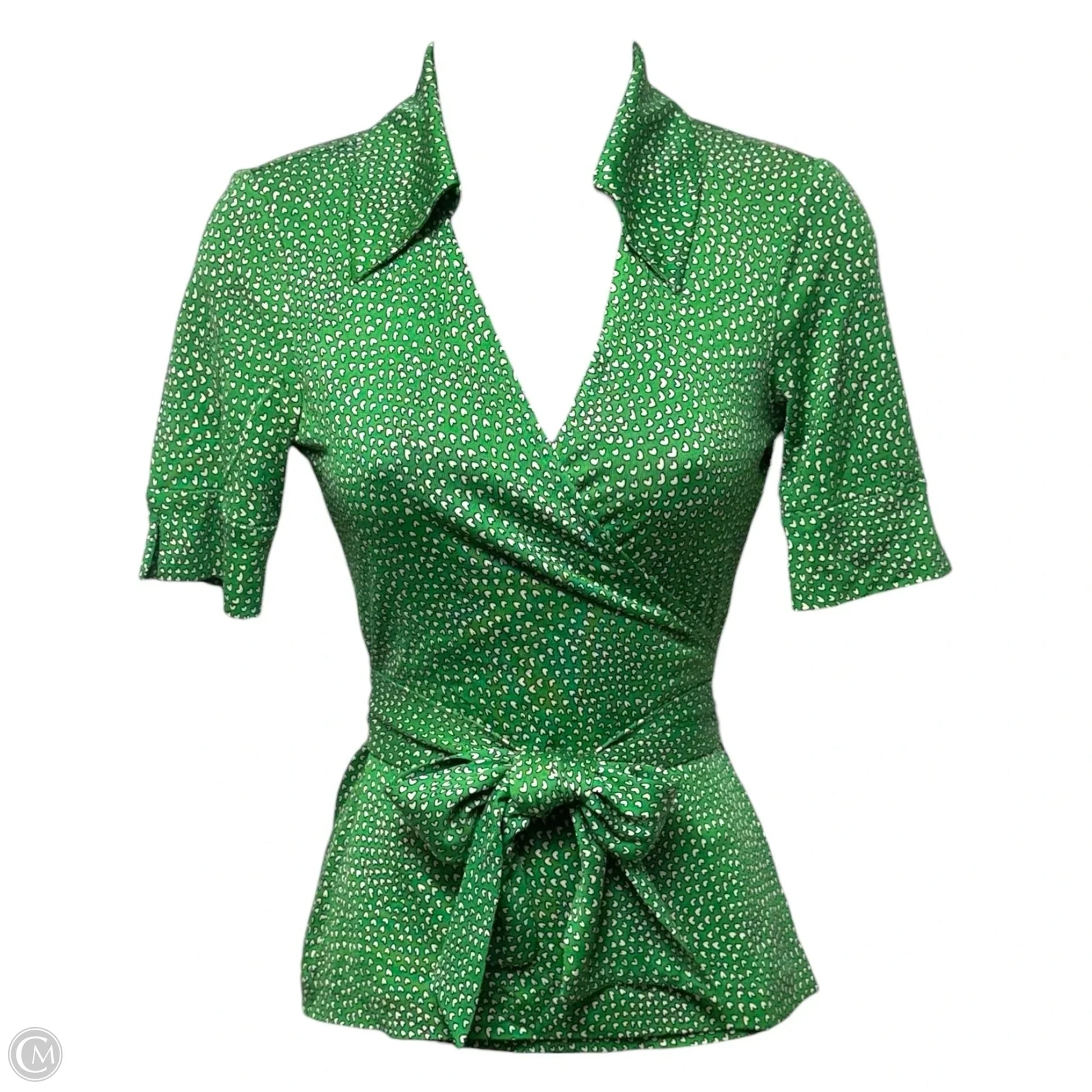 Silk Top Short Sleeve Designer By Diane Von Furstenberg In Green, Size: 0