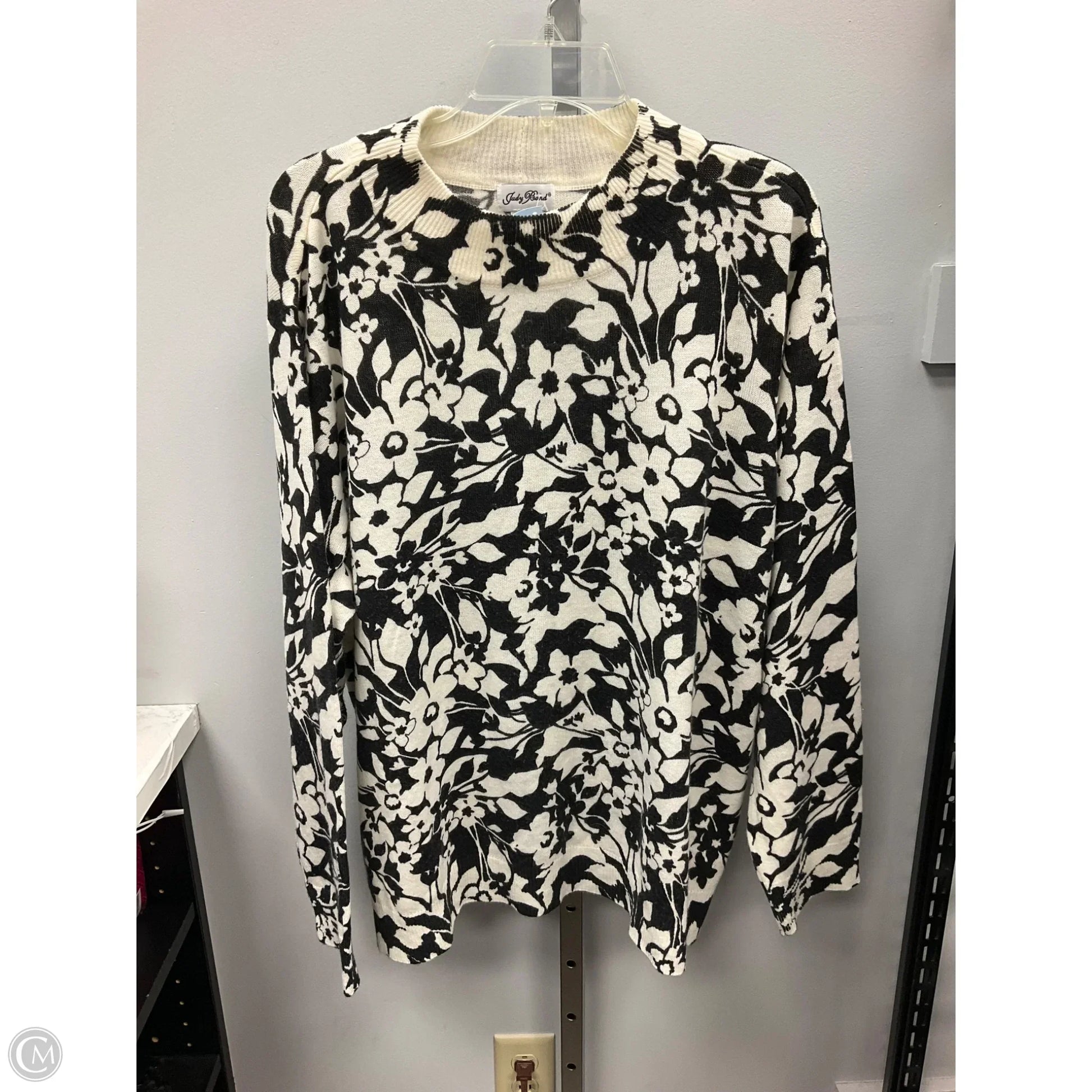 Elegantly crafted Judy Bond sweater in classic black and white, size 2x. Luxuriously soft fabric, impeccable fit, exuding sophistication and timeless charm.