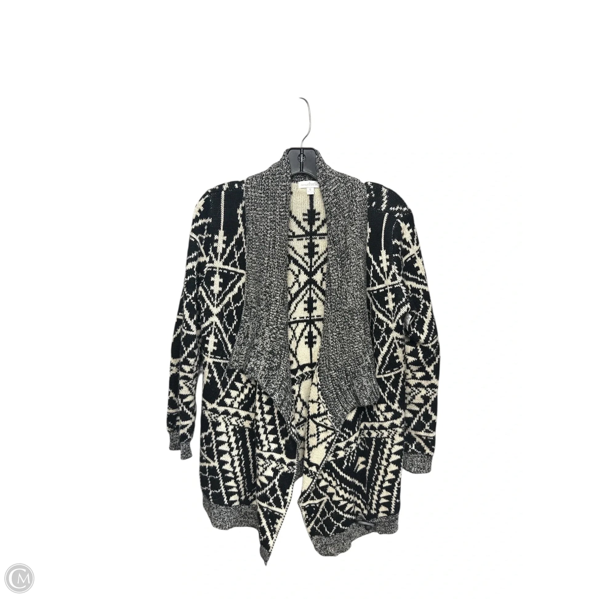 Sweater Cardigan By Charming Charlie In Black & Cream, Size: S