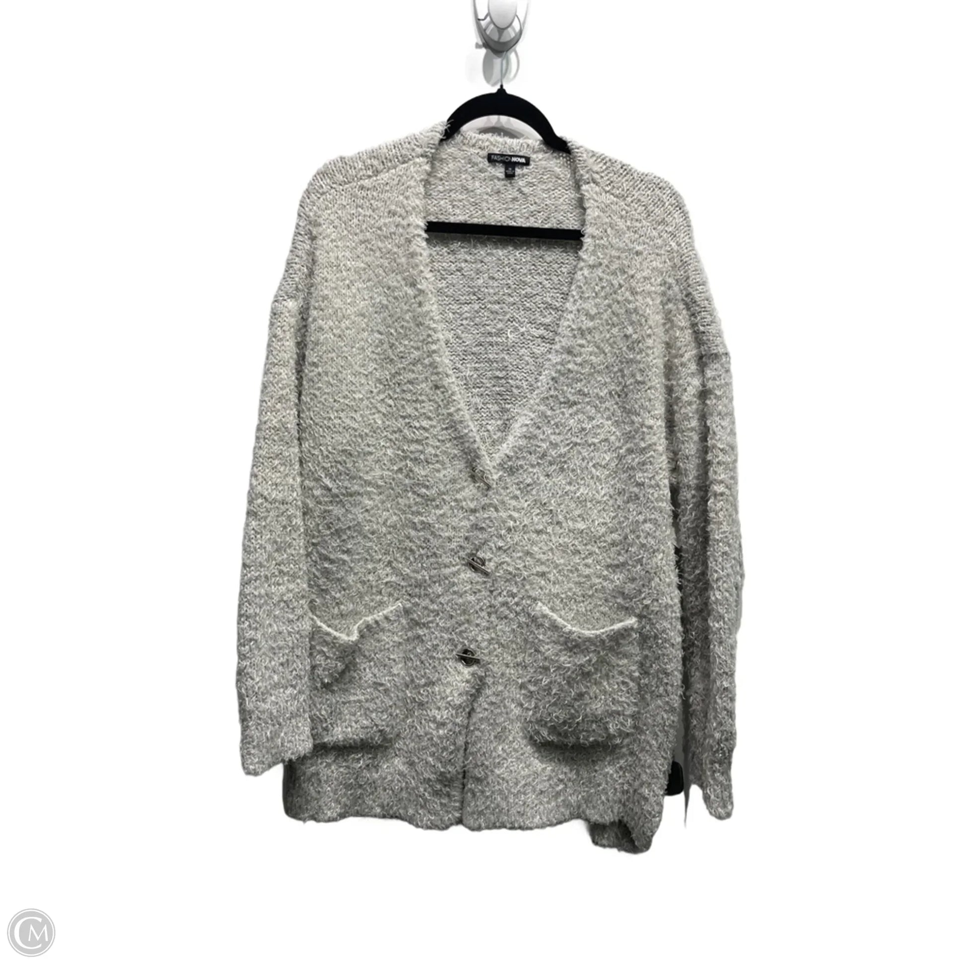 Sweater Cardigan By Fashion Nova In Grey, Size: 1x